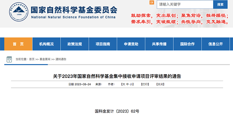 8月24日,國家自然科學基金委員會發布了《關于2023年國家自然科學基金集中接收申請項目評審結果的通告》。