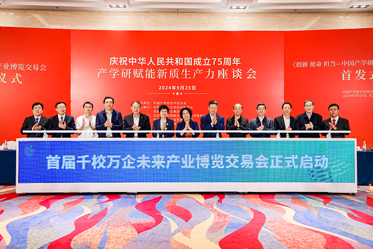 2024年9月25日,由中國產學研合作促進會主辦的“迎國慶·話發展”產學研賦能新質生產力座談會在北京舉行,來自教育部、國家知識產權局等部委領導,兩院院士,政產學研金服用相關單位以及媒體機構代表出席。記者從會上獲悉,首屆千校萬企未來產業博覽交易會將于2024年12月11日至13日在四川成都舉辦,將是全國首個聚焦未來產業的產學研博覽交易會。