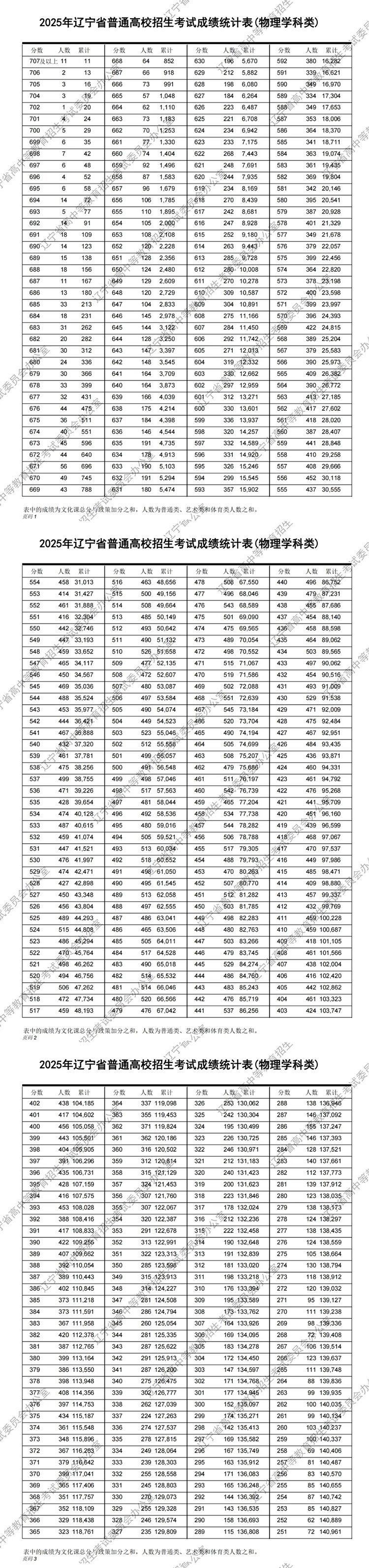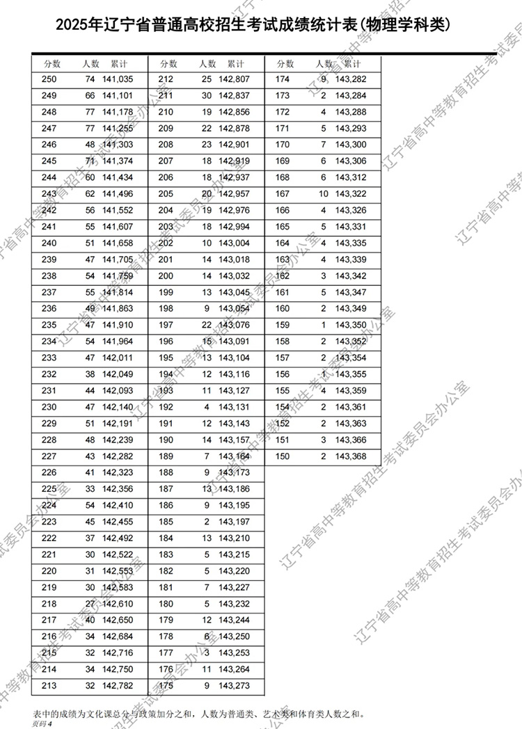 2025年遼寧省普通高校招生考試成績統計表(物理學科類)