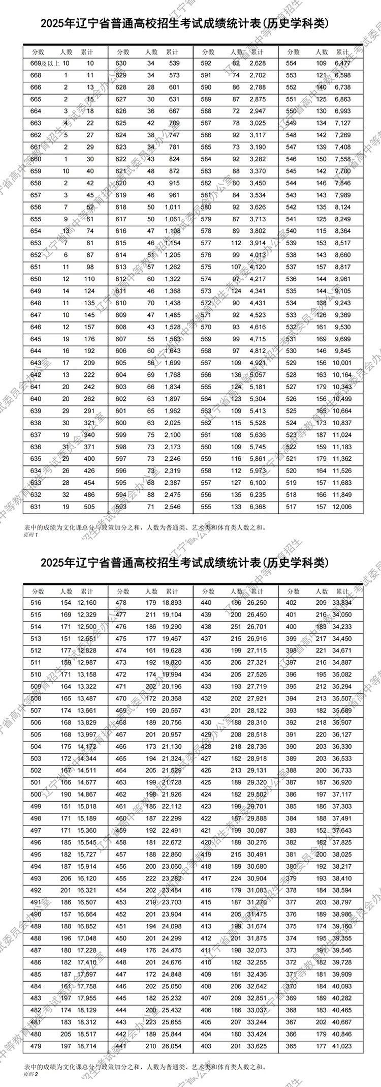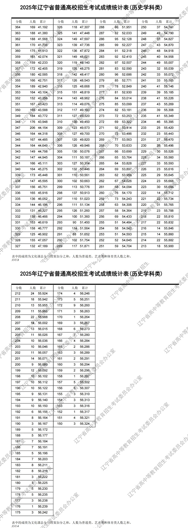 2025年遼寧省普通高校招生考試成績統計表(歷史學科類)
