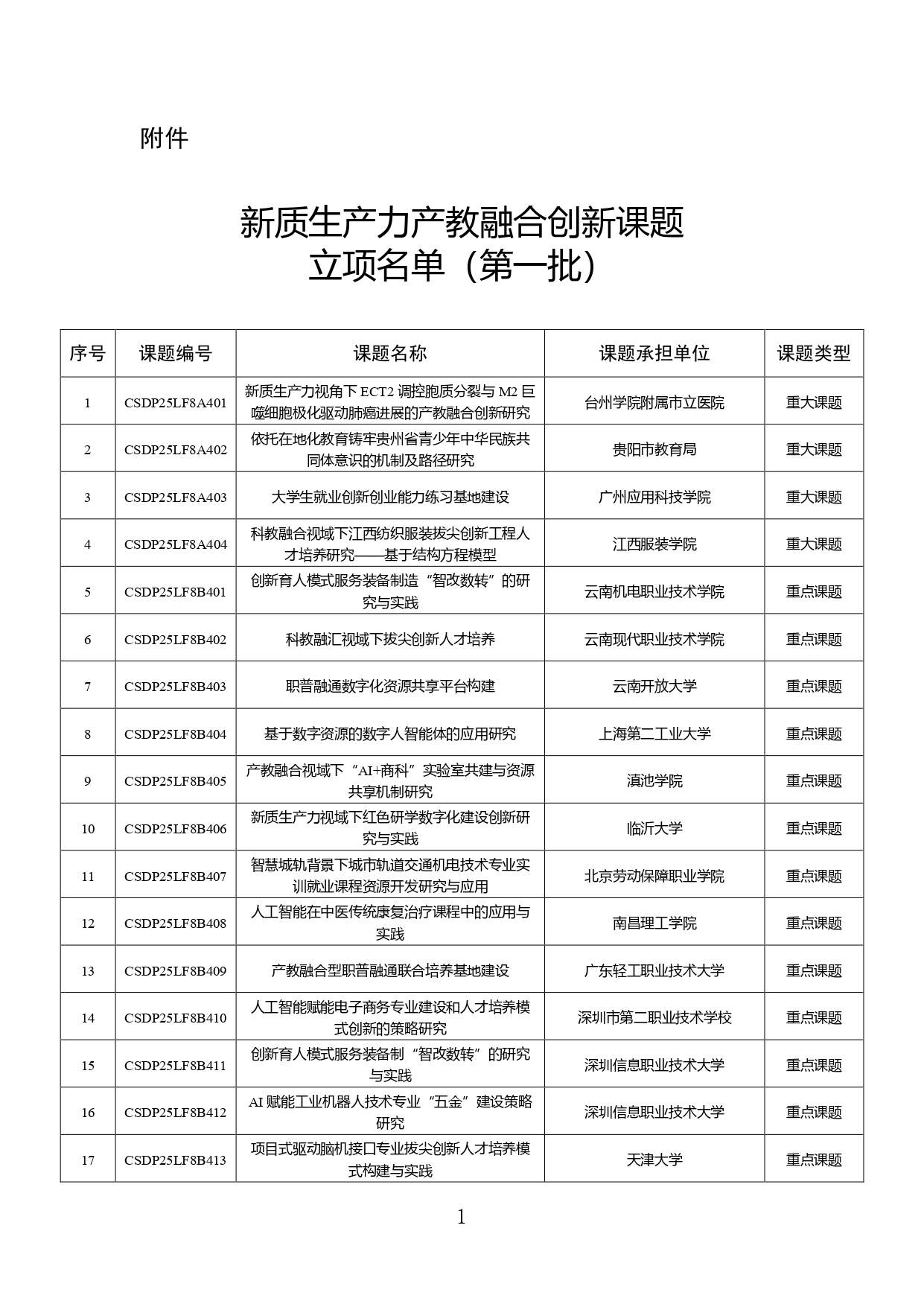 教育部公布第一批新質生產力產教融合創新課題立項名單