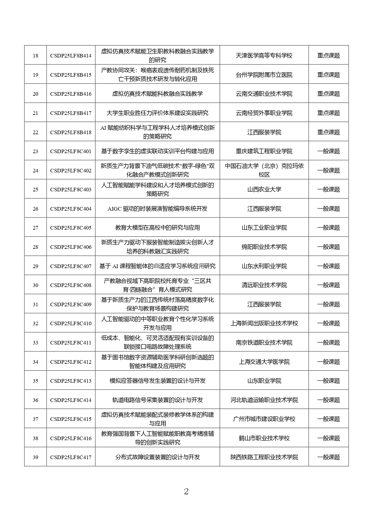 根據《關于組織開展新質生產力產教融合創新課題研究的通知》,各有關單位積極組織報送了課題申報書。按照申報要求,規建中心組織專家開展了課題評審。現將第一批47項“新質生產力產教融合創新課題”予以公布。其中,重大課題4項,重點課題18項,一般課題25項。