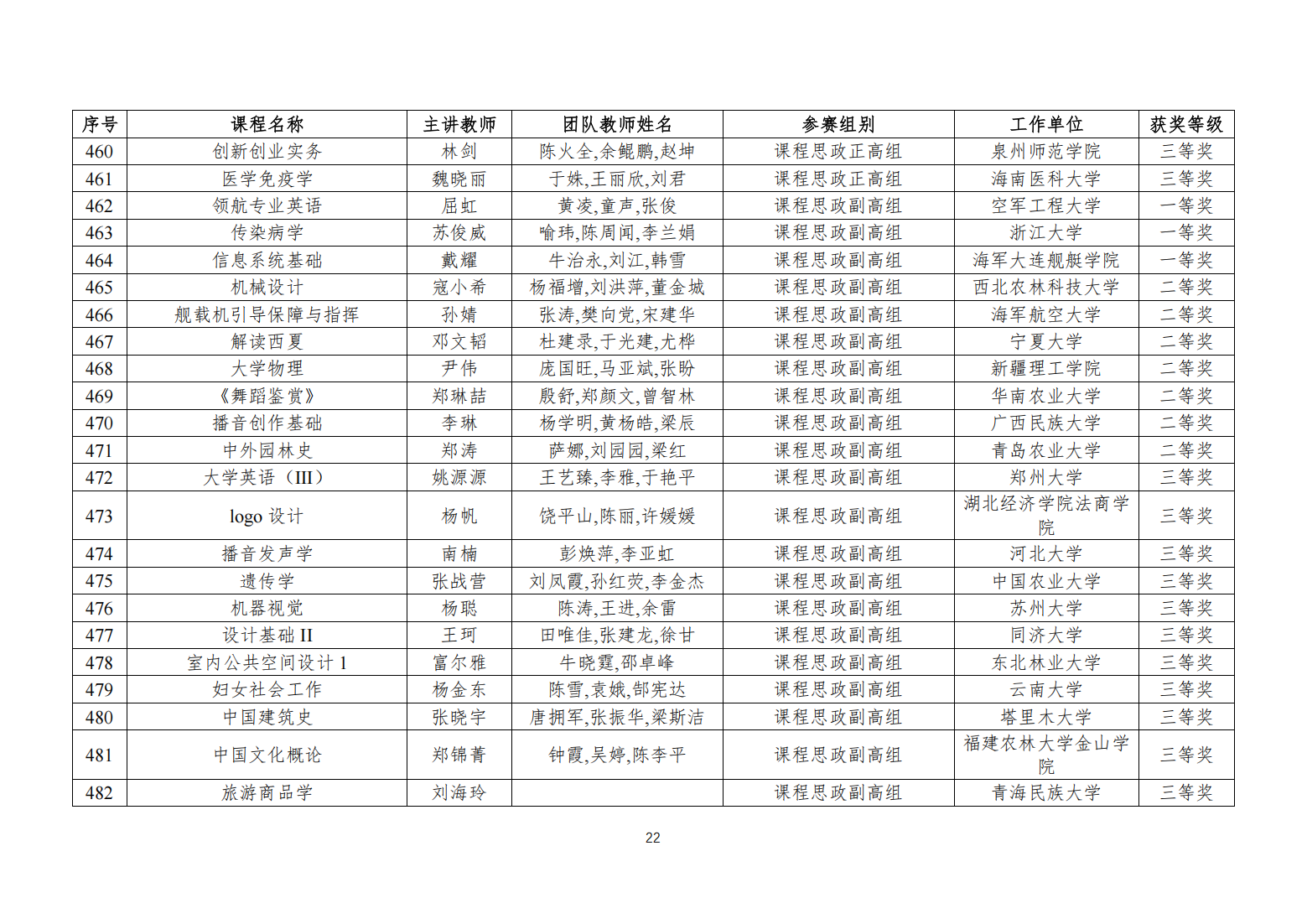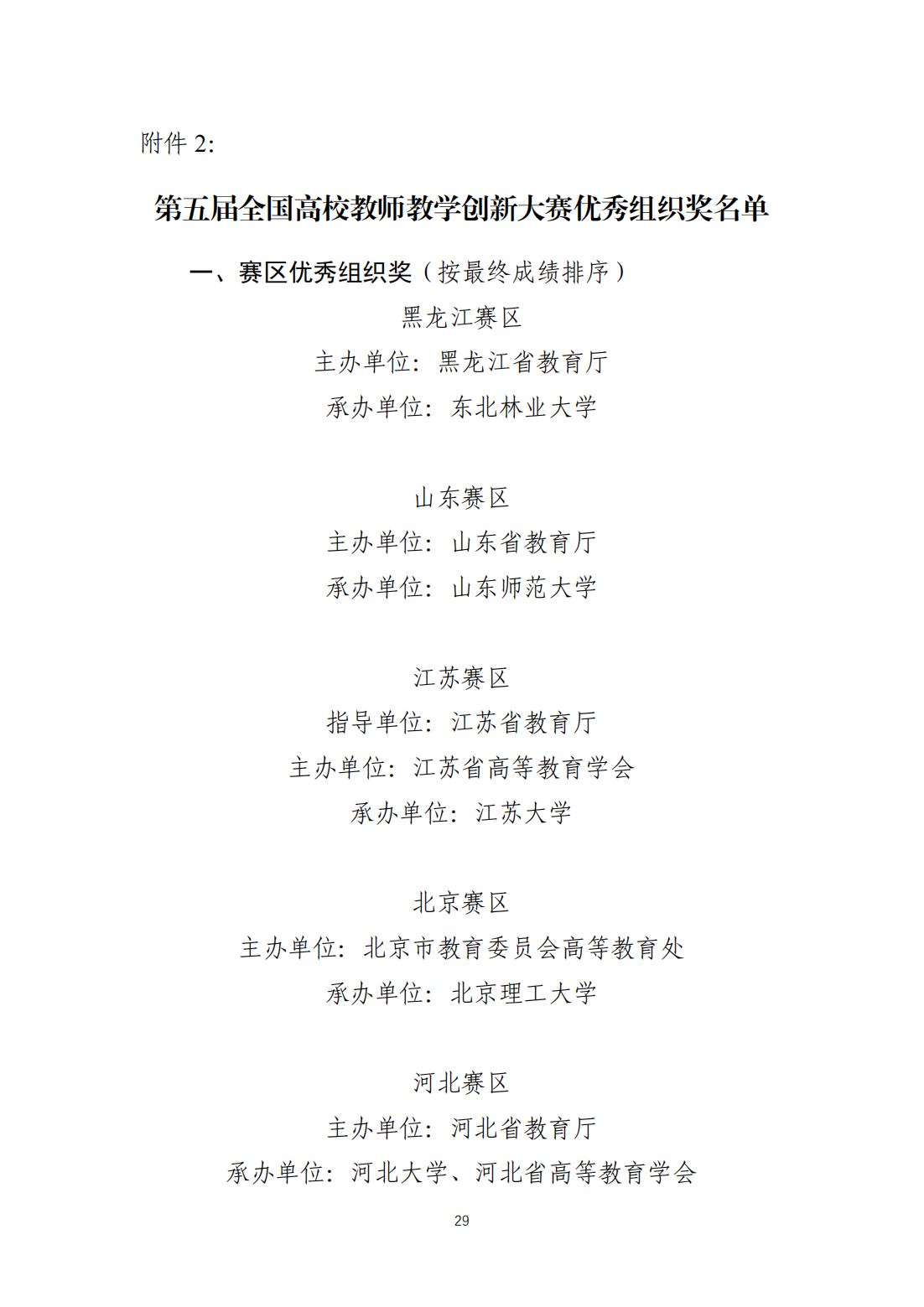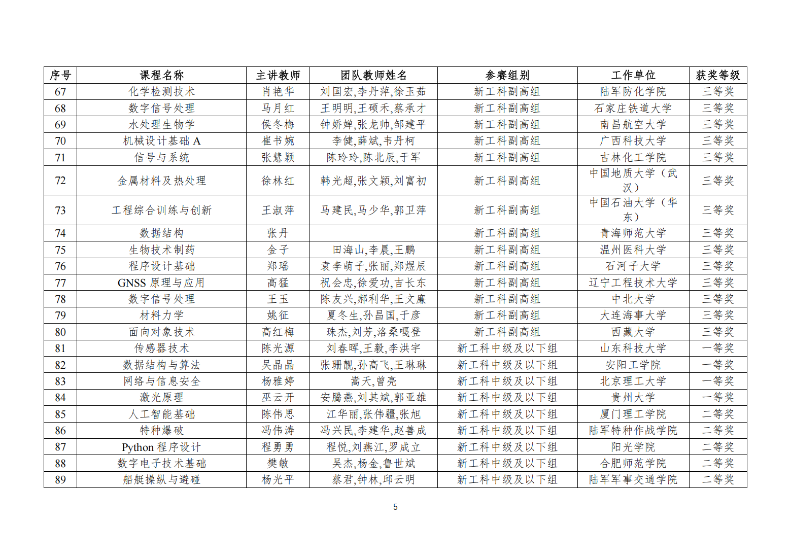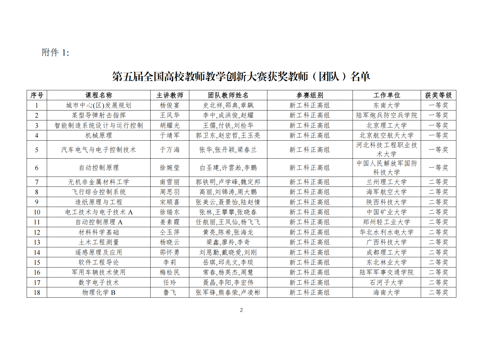 關于公布第五屆全國高校教師教學創新大賽獲獎名單的通知