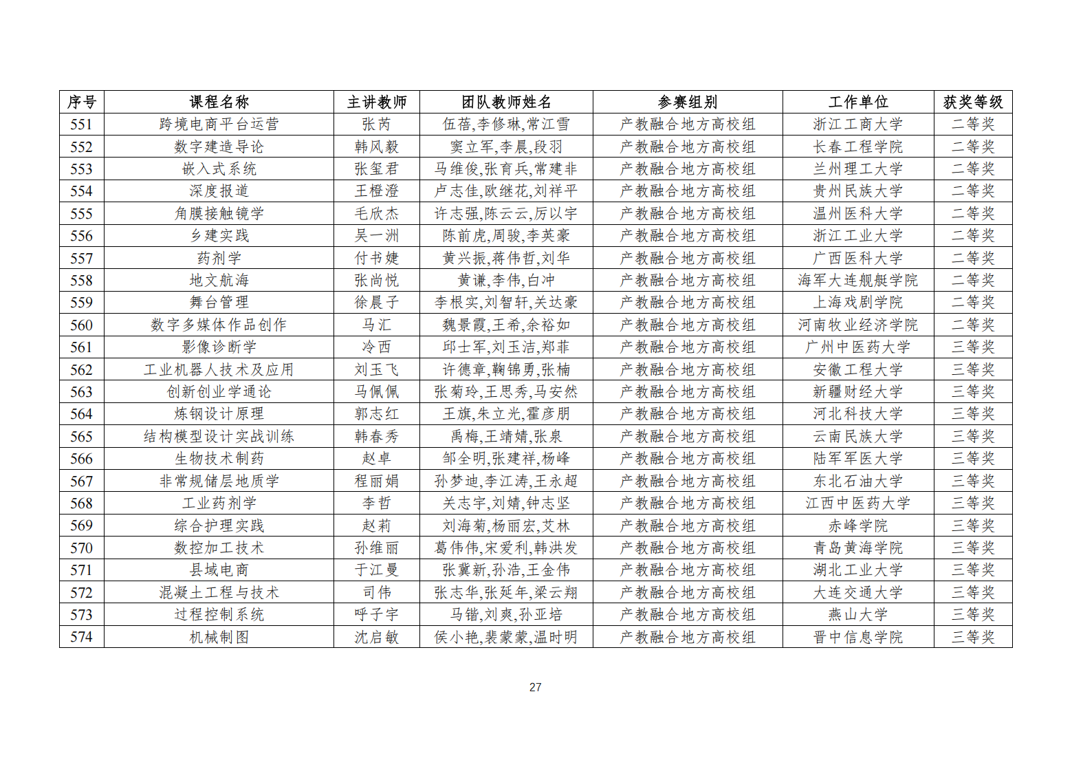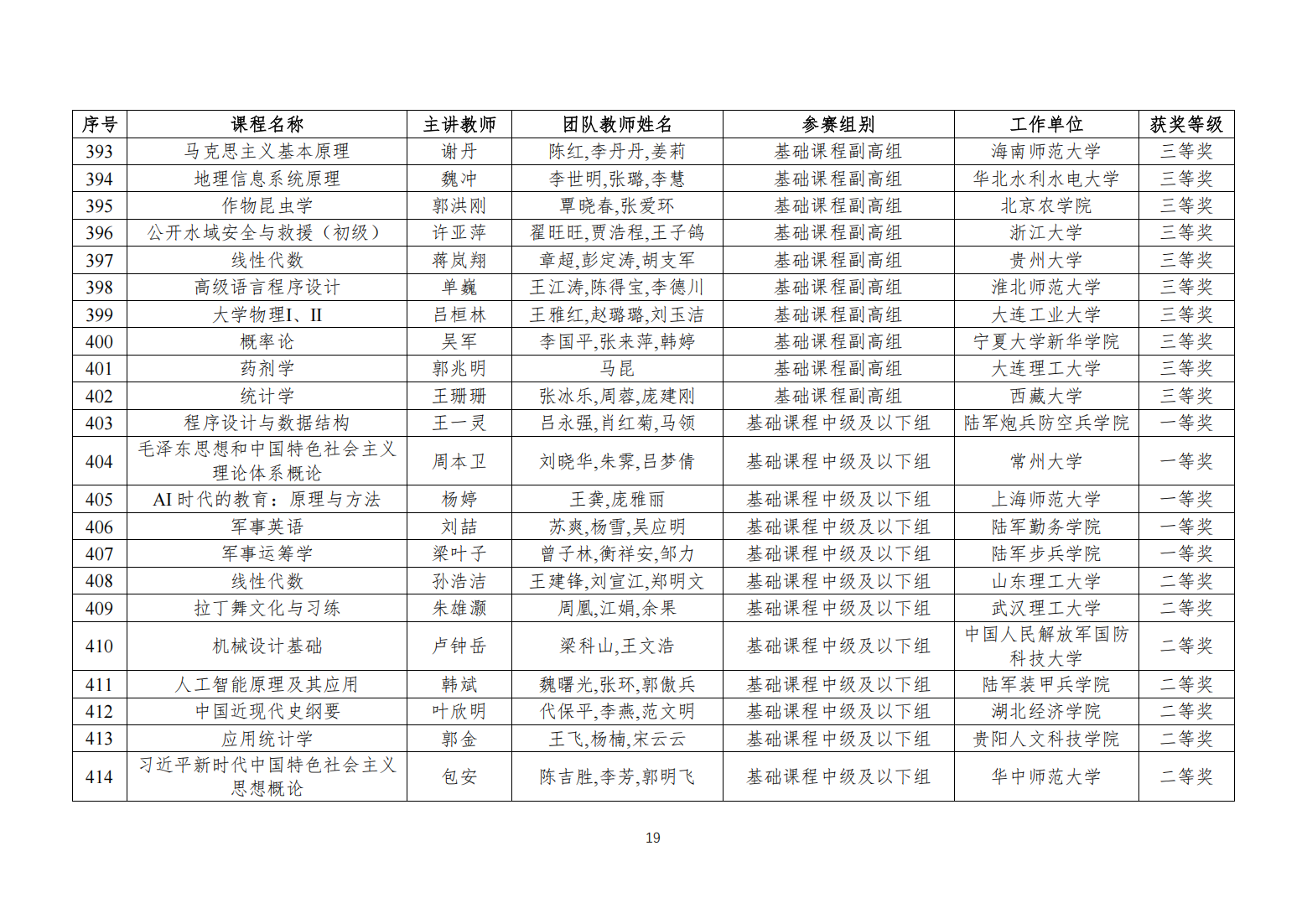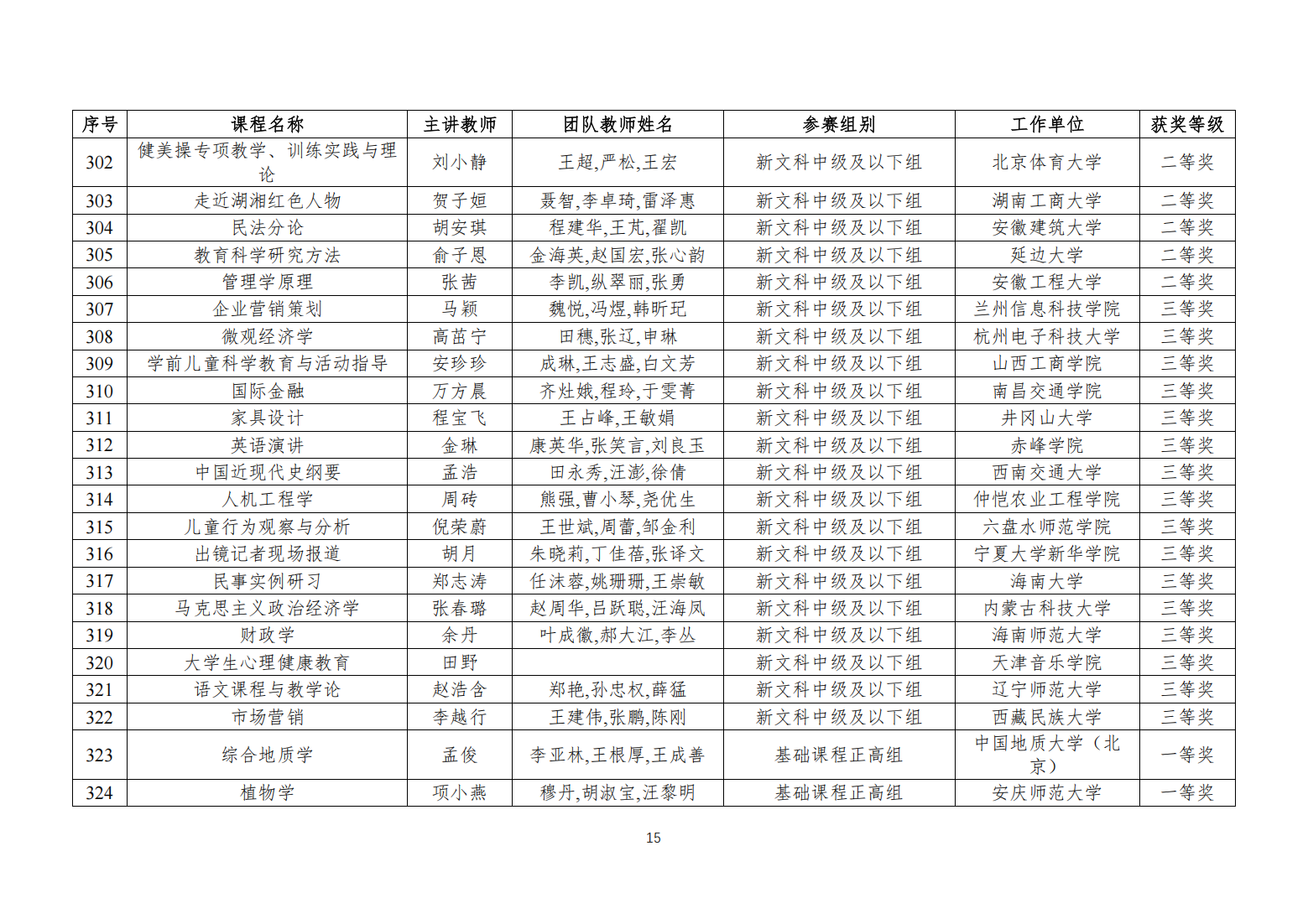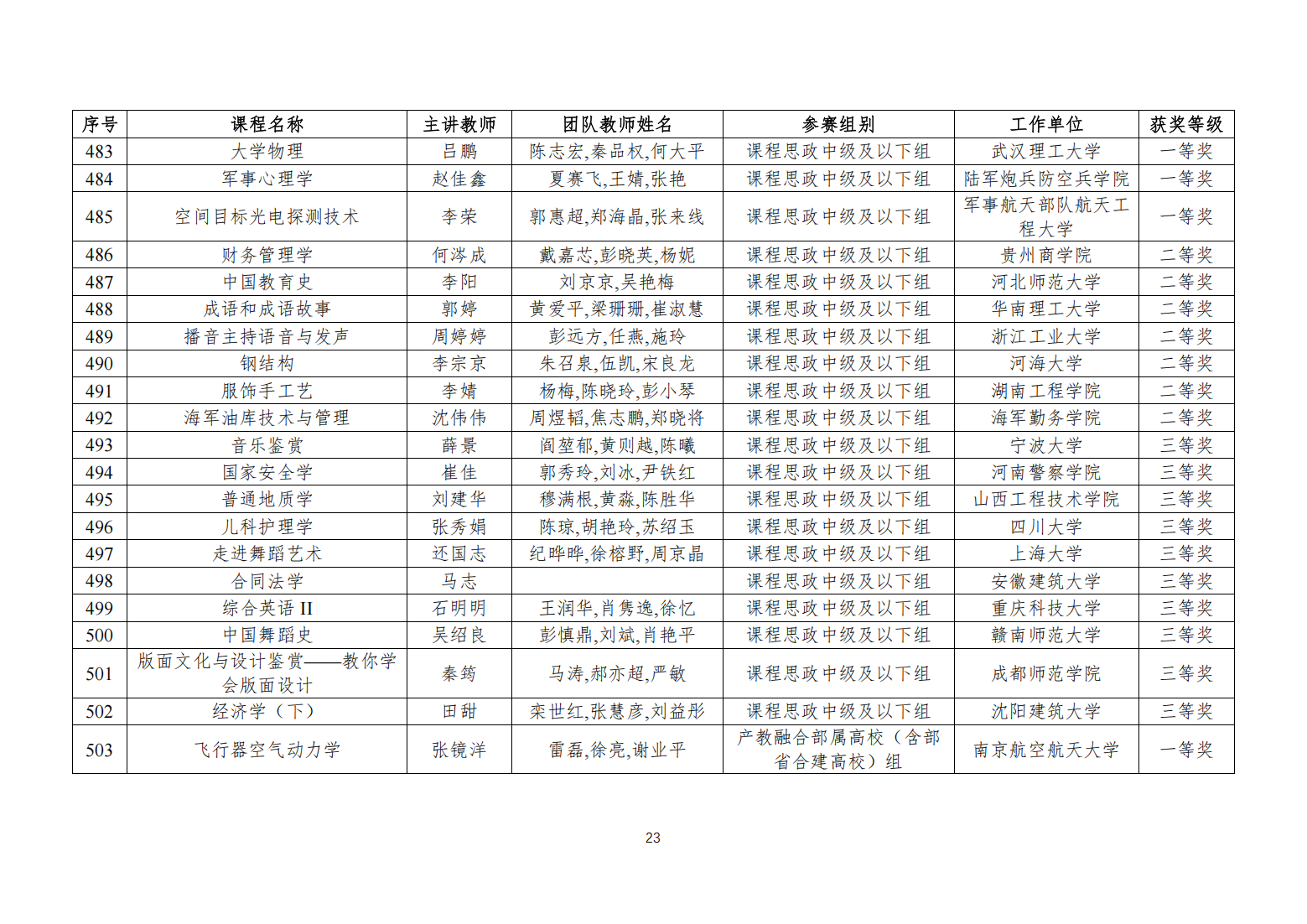 關于公布第五屆全國高校教師教學創新大賽獲獎名單的通知
