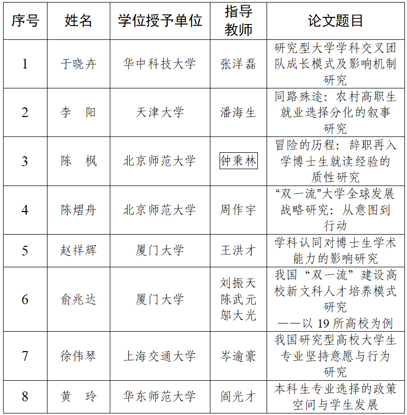 8篇博士學位論文入選“中國高等教育學會學術創新計劃——高等教育學博士學位論文文庫”