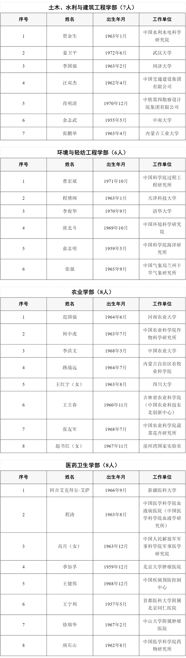 新當選的中國科學院院士平均年齡57.2歲,最小年齡44歲,最大年齡66歲,60歲(含)以下的占67.1%,女性科學家有5人當選。新當選的中國工程院院士中,有6位扎根西部邊遠地區的專家,有8位女性科學家。