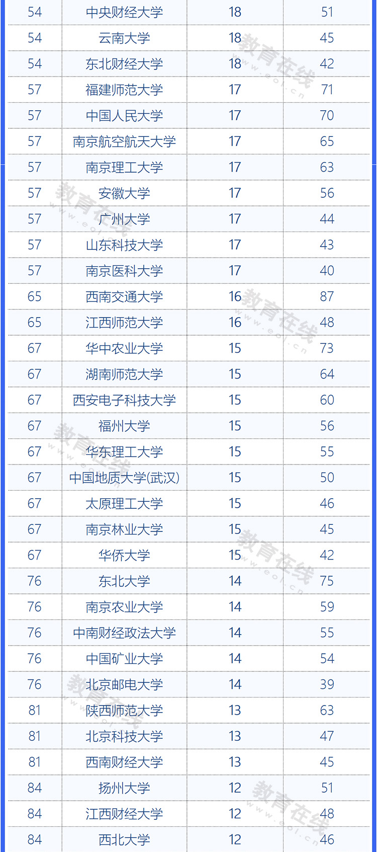 據統計,第三批認定結果中,浙江大學獲批課程最多,共63門;四川大學緊隨其后,47門課程獲批;清華大學位列第三,42門課程獲批。第三批國家級一流本科課程獲批數量位列全國前十的高校還有北京大學、中山大學、西安交通大學、同濟大學、武漢大學、上海交通大學、山東大學和北京理工大學。