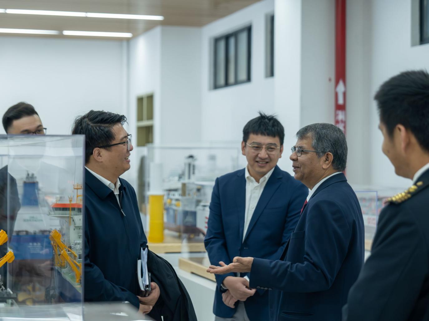在泉州海洋職業學院校長莊偉廉、副校長陳永鑫的陪同下,馬來西亞林肯大學校長Dr. Amiya Bhaumik、聯合國協會全球大使、林肯大學創新與可持續發展學院院長Dr. Zoensek Lea和國際經濟技術與產業創新協作平臺常務董事陳凌峰等一行代表團實地參觀了泉州海洋職業學院華為人工智能實訓中心、世界特種船舶展示廳、360°船舶操縱實訓室等特色教學場景,并對該校先進的教學設施與產教融合成果給予高度評價。