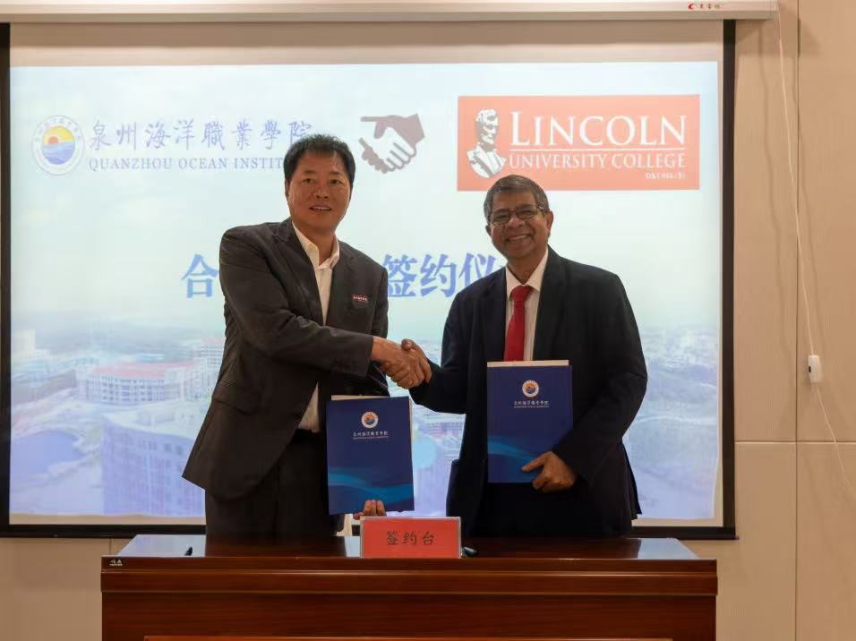 2025年4月6日,馬來西亞林肯大學與泉州海洋職業學院正式簽署合作備忘錄,開啟兩校國際化合作新篇章。此次合作旨在推動“東盟·一帶一路”教育行動深入發展,推動職業教育與產業需求的深度融合,創新海事人才國際培養模式,為全球航運業低碳轉型貢獻中國智慧。