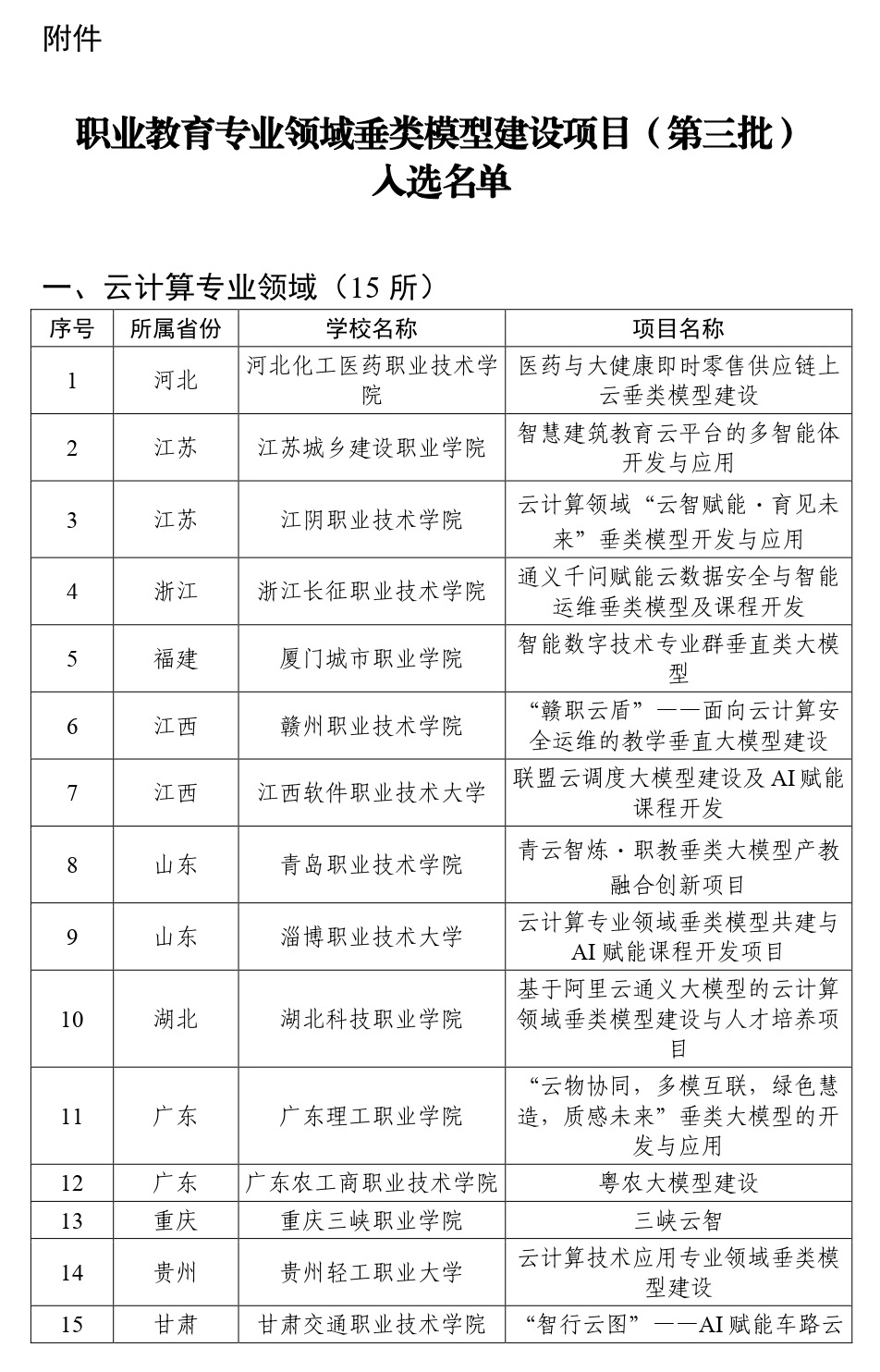 第三批職業教育專業領域垂類模型建設項目入選名單公布