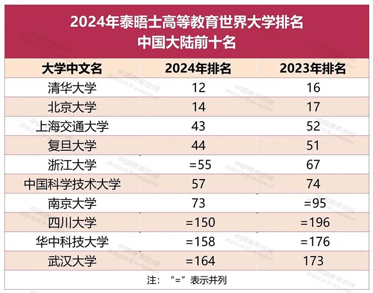 9月27日,泰晤士高等教育發布了高等教育世界大學排名,該排名顯示:兩所中國大陸的高校——清華大學和北京大學——正在向泰晤士高等教育世界大學排名前十名邁進。