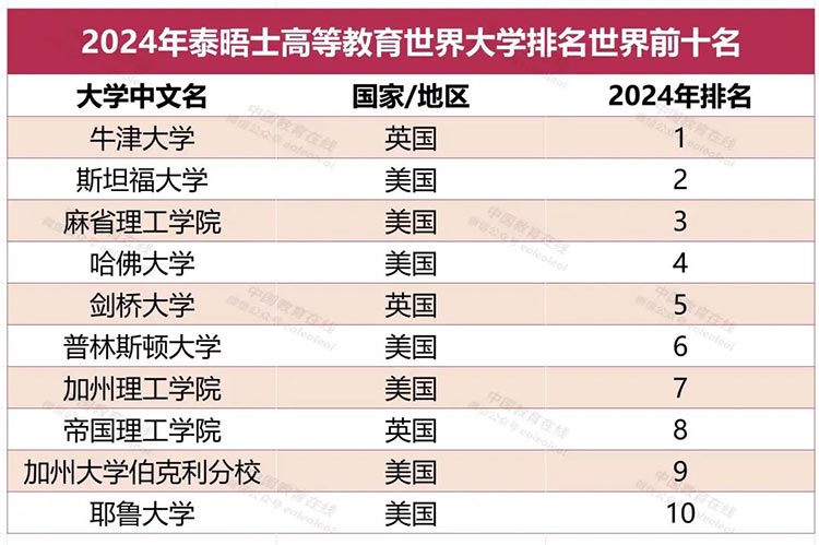 從國外大學的排名情況看來,牛津大學是本次泰晤士高等教育世界大學排名中排名最高的大學,斯坦福大學位列世界第二名,成為排名最高的美國大學,排名第三名的則是麻省理工學院。