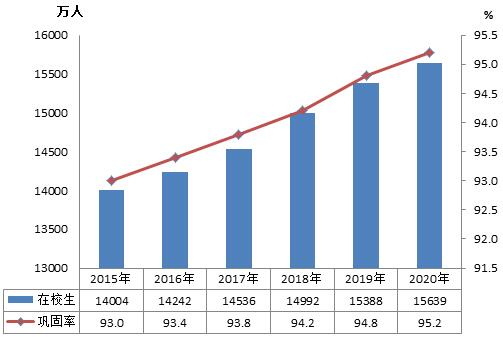 圖3 “十三五”時期義務教育在校生和鞏固率