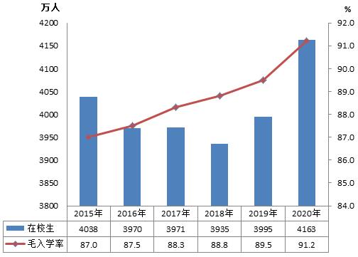 圖4 “十三五”時期高中階段教育在校生和毛入學率