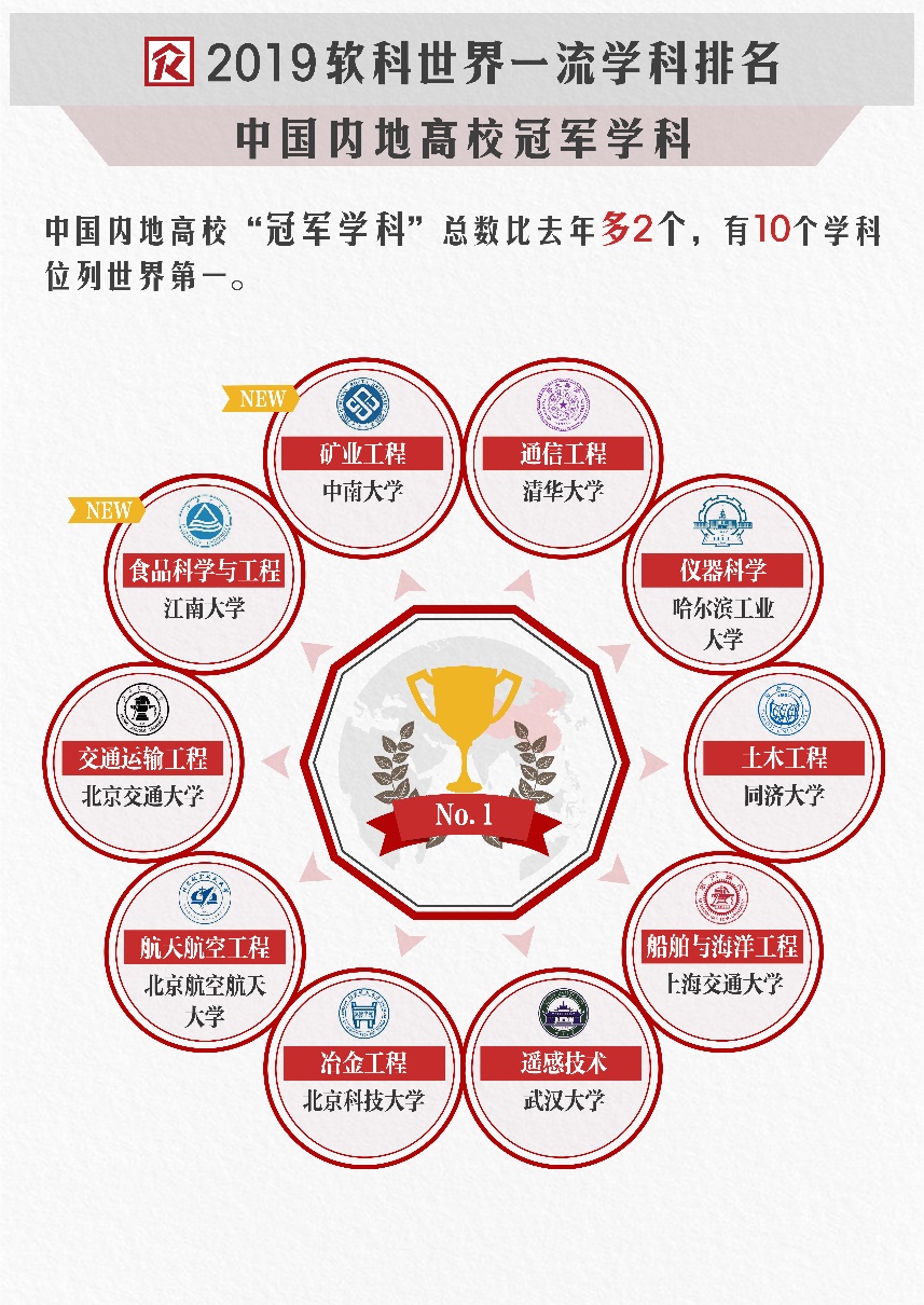 2019軟科世界一流學科排名54個學科“冠軍”高校