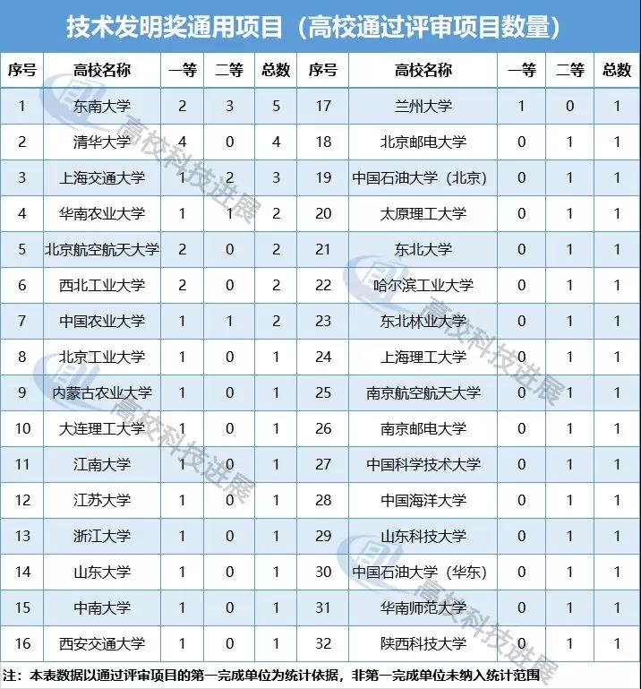 在獲得本年度該獎項通過項目的32所高校中,東南大學、清華大學、上海交通大學等3所高校以獲通過評審項目5個、4個、3個的優異表現,數量上穩居前三。