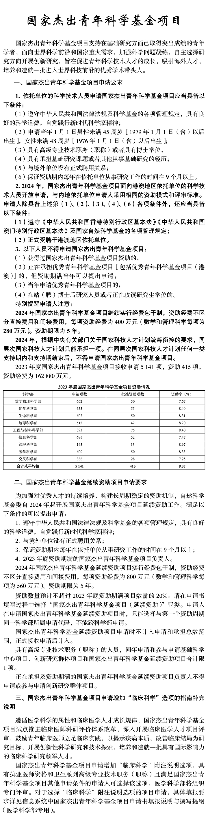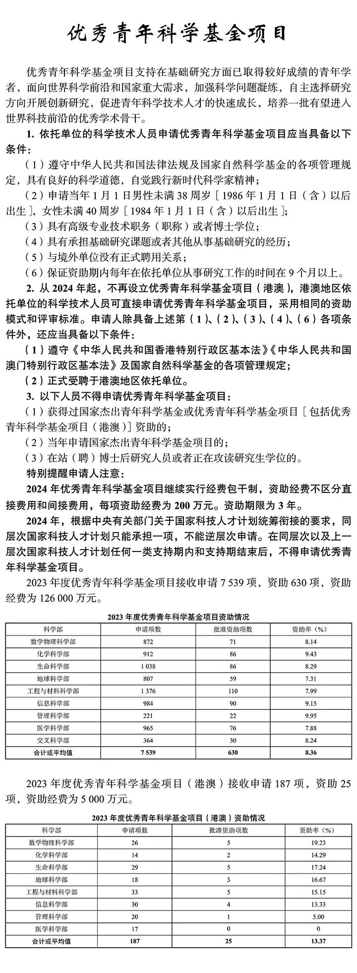 1. 青年科學基金項目、優秀青年科學基金項目、國家杰出青年科學基金項目、創新研究群體項目:同類型項目作為項目負責人僅能獲得 1 次資助。