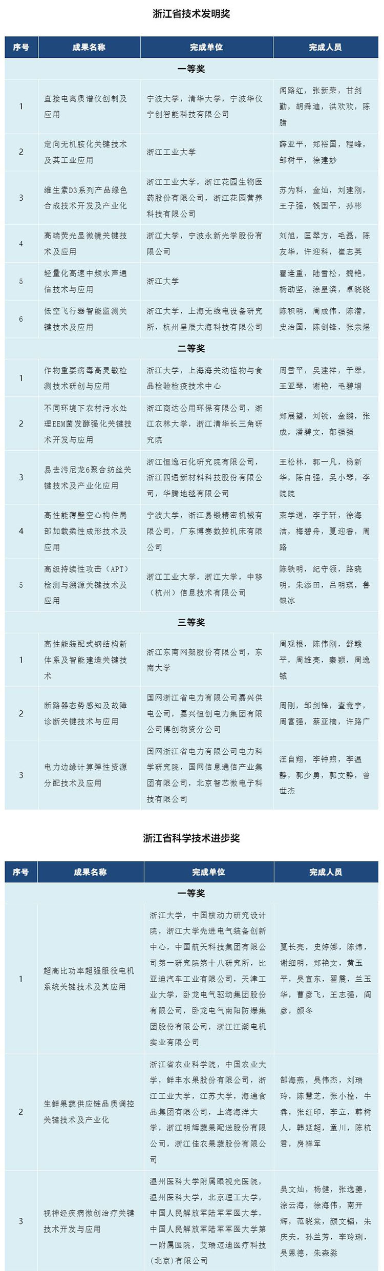11月22日,加快建設創新浙江因地制宜發展新質生產力動員部署會暨全省科學技術獎勵大會在杭州舉行。大會表彰了2023年度浙江省科學技術獎310項。其中,浙江科技大獎1項,自然科學獎、技術發明獎、科學技術進步獎共299項,國際科學技術合作獎10項。