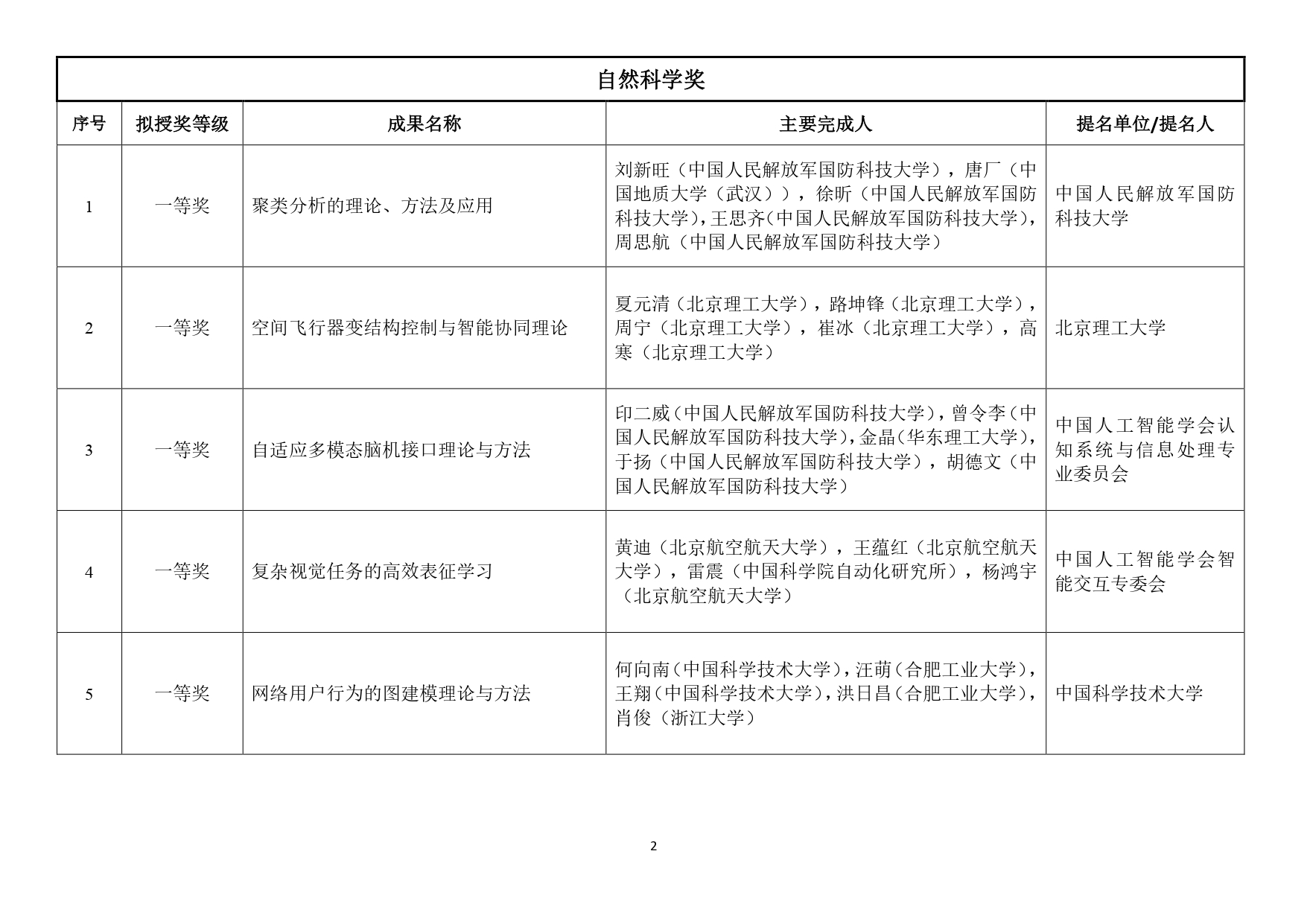 1月15日,中國人工智能學會公示2024年度吳文俊人工智能科學技術獎擬授獎項目名單。名單顯示,徐宗本院士獲科技成就獎提名,張大鵬、王國胤、章毅獲科技貢獻獎提名。此外,自然科學獎9項,技術發明獎8項,科技進步獎17項,青年科技獎15人。據統計,共有21所高校作為第一完成單位入選。