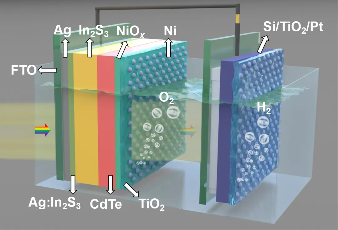 針對這一技術瓶頸,天津大學化工學院新能源化工團隊成功研制出具有突破性的半透明硫化銦光陽極器件。“這種半透明設計巧妙地解決了傳統金屬層導電與透光無法兼得的問題。”論文通訊作者、天津大學化工學院教授王拓說,“它不僅能顯著提高水氧化反應速率,還能讓部分陽光穿透到達光電陰極,大幅減少了太陽光的能量損耗,有效突破了光生電子跨界面傳輸的障礙。”
