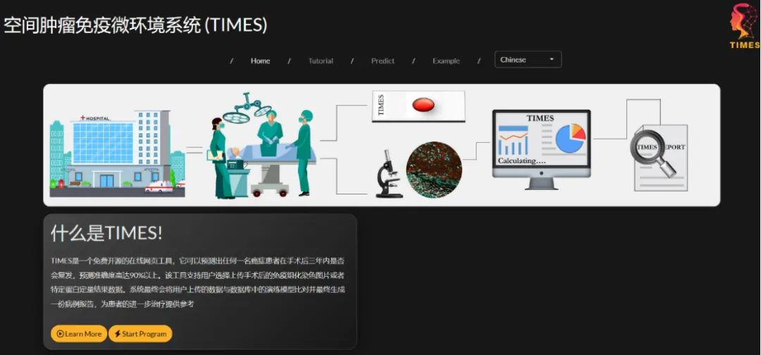“TIMES”評分系統全稱為“Tumor Immune MicroEnvironment Spatial”(腫瘤免疫微環境空間)評分系統,是首個結合空間免疫信息的肝癌復發預測工具。研究證明了免疫細胞的空間分布比其整體數量更能決定臨床預后,將空間轉錄組學、蛋白質組學和多光譜免疫組化技術與人工智能驅動的空間分析整合,創造了腫瘤微環境評估的全新方法。